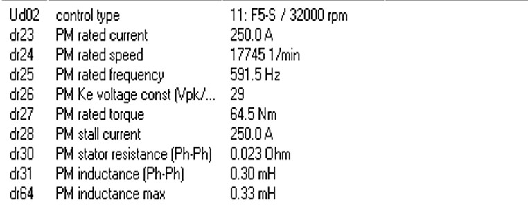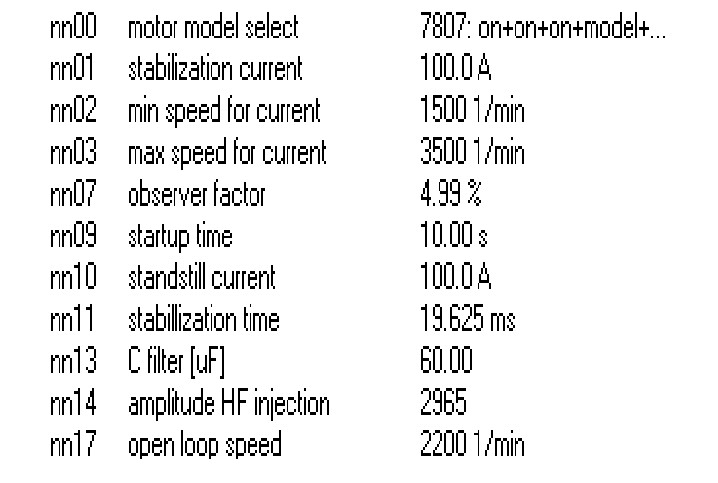 With unload on the motor shaft, the equipment proceeds a self-learning action following the motor parameters. Dr30: 2 times phase resistance, Dr31, Dr64: 2 times phase inductance.